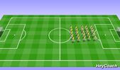,目标是整合基本的带球要点,提高球员在狭小区域内控球、转身和带球技术能力,使球员在灵活、协调、柔韧、速度和平衡能力上有所提高。该教案共分为三个环节。,