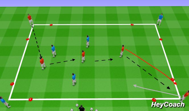 2)球队试图去保持球权并且当有机会的时候,试图传球给其中一个角落目标,去得到1分。