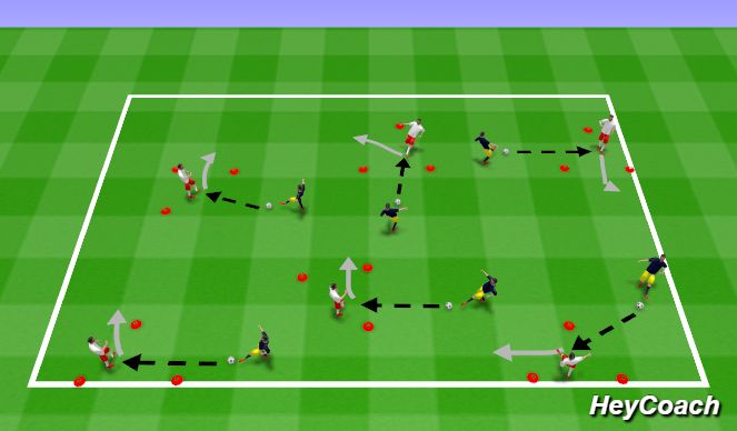 2. 1v1 to goal with attacker trying to score on either of two goals.