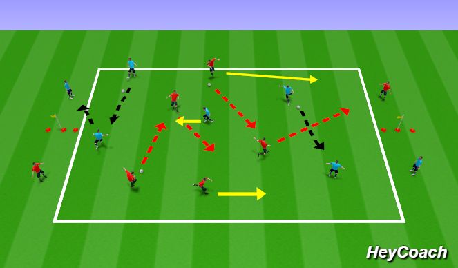 -Players look to combine and pass to partner who is located at opposite ends of the field in designated area