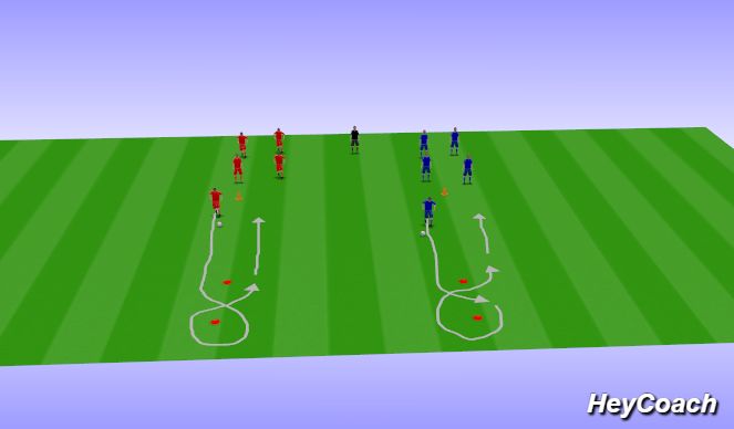 3、进攻队员带球接近场中央,在防守队员抢球之前选择一边球门,带球穿过球门;
