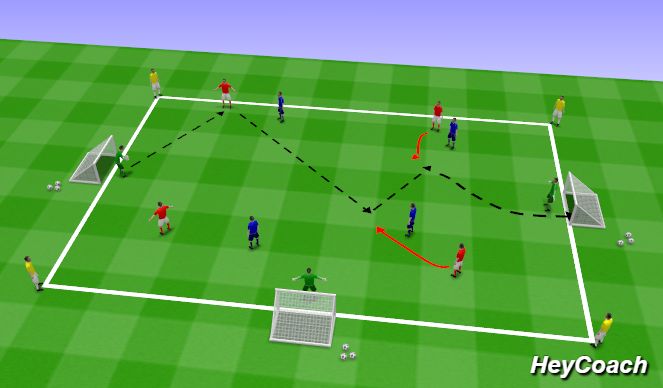Red team must transfer the ball from one end man to the other, playing through the zones If defending side intercept they must find any end man. Play starts again with Red team.