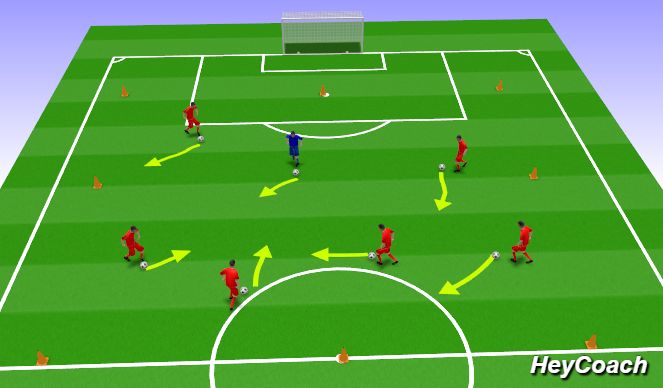 1.场地内球员每人1个球,带球的过程中避免被抓人球员(蓝色衣服)抓住。