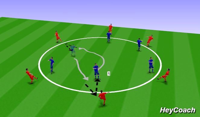 Split players into 2 teams, they will stay like this all practice. One team on the outside with the balls, one team on te inside without the balls.