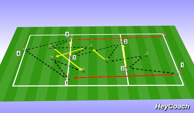 - When the final drop pass in made in the final third to the player 3, you will see player 1 come from the opposite side of the grid and receive the next penetrating pass on the point of attack switch. and player 3 will drop and take player 1's position on the far end line.