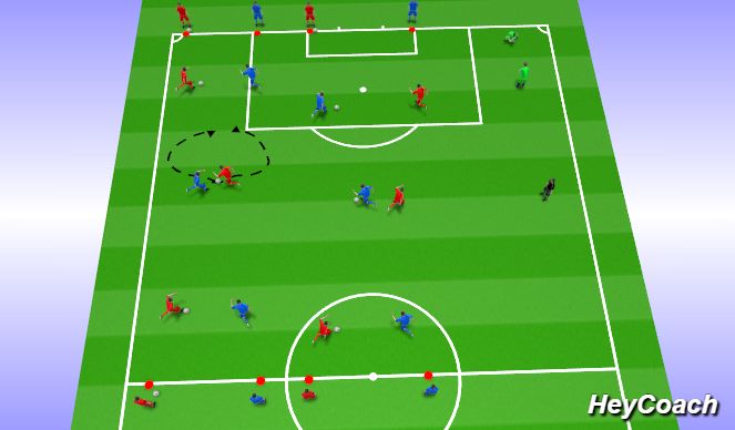 方法:1进攻两名进攻队员,一名防守队员,开始守门员发球给进攻队员