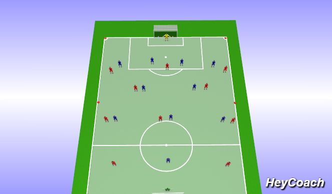 1:将队员分两组,攻方10人,守方10人,进行2防2协防练习