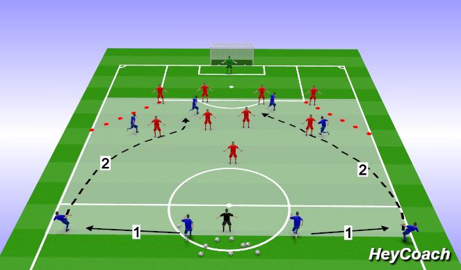 1.24人分成两大组,传中组4人,进攻线练习20人(分成5小组,小组4人)