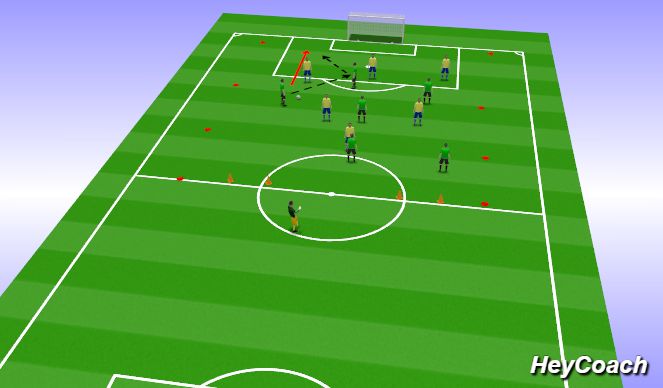 变化:传球给无球队员,无球队员可以接球转身射门或者传给无球队员后,无球队员可能遇到防守队员拦截,向前要球的队员再回撤做墙,向内侧的2v1